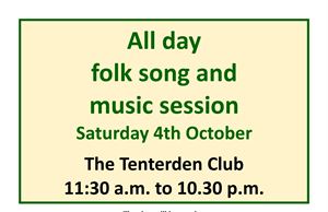 All day folk song and music session on Saturday 4th October at The Tenterden Club.